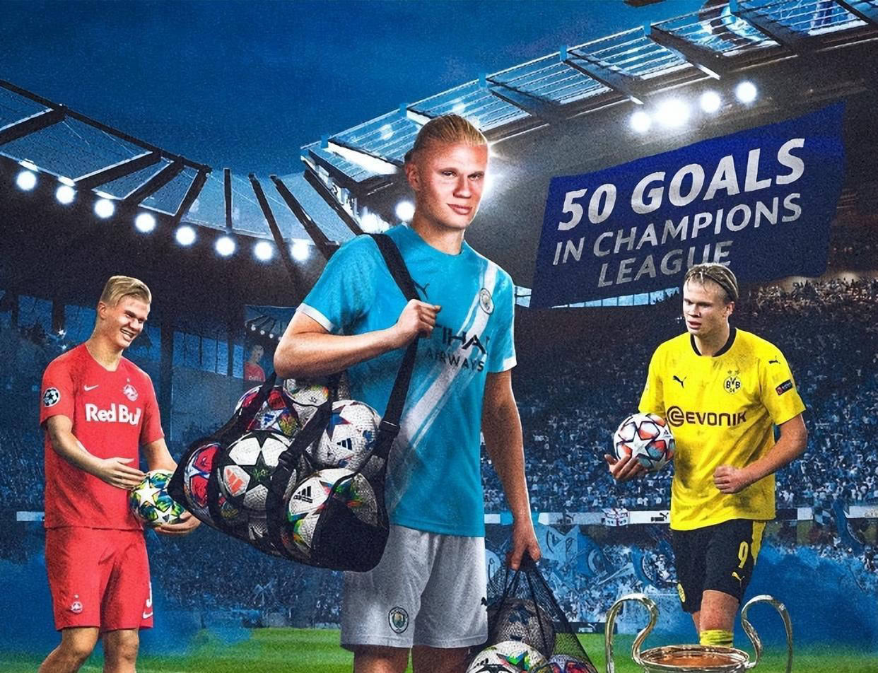 哈兰德欧冠进球50粒,挑战C罗纪录需注重身体素质